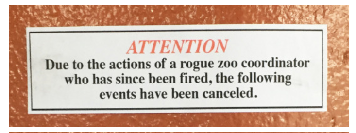 Obvious Plant left some fake zoo events at the Dallas Zoo...